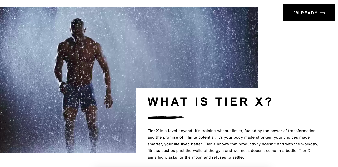 The page uses CSS3, Javascript and Greensock GSAP to animate captivating images and accompanying text to explain the brands personal training services and lead customers to enroll in the program.