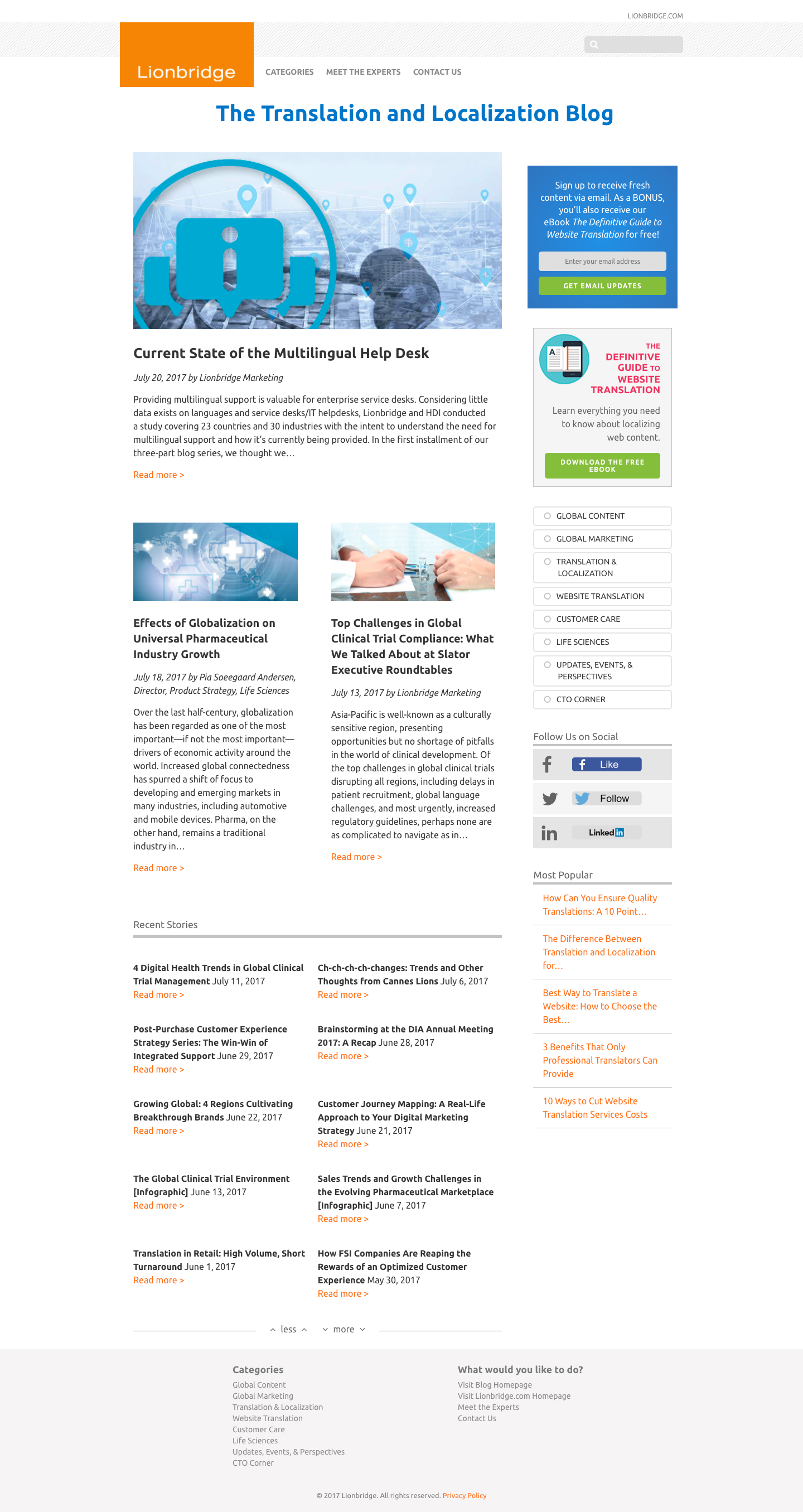 I helped Lionbridge Technologies design and implement their content portal which allows their team to post and manage articles written by their subject matter experts.